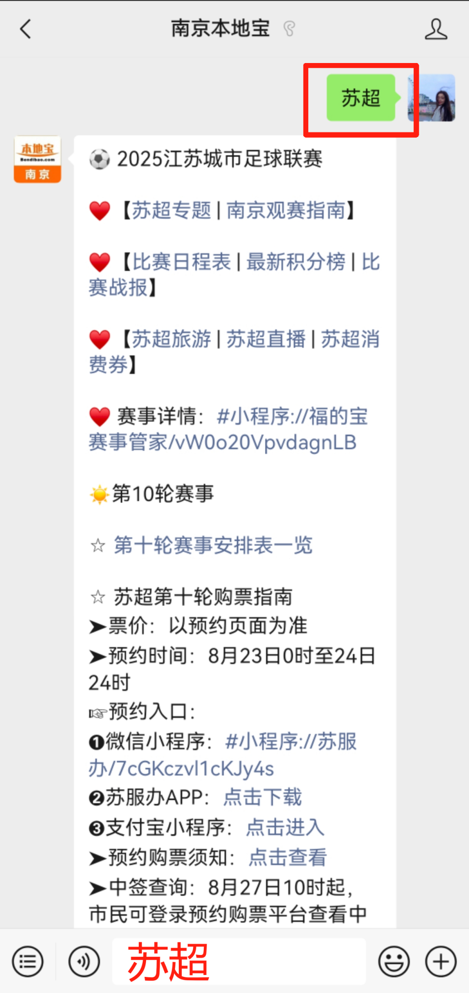 提醒:扫描下方二维码,关注南京本地宝,后台对话框回复【苏超】,获取苏超第十轮快捷查询入口(苏服办入口)。